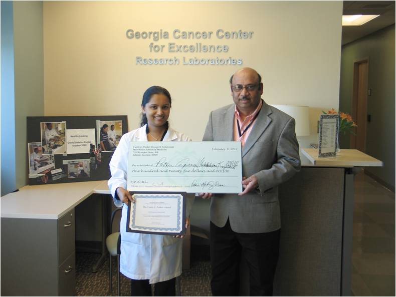 Graduate student Shubha Kayarthodi received MSM Curtis Parker award for outstanding graduate student scientific accomplishments and presentation of her Cancer research work (Dr Reddy, Mentor)